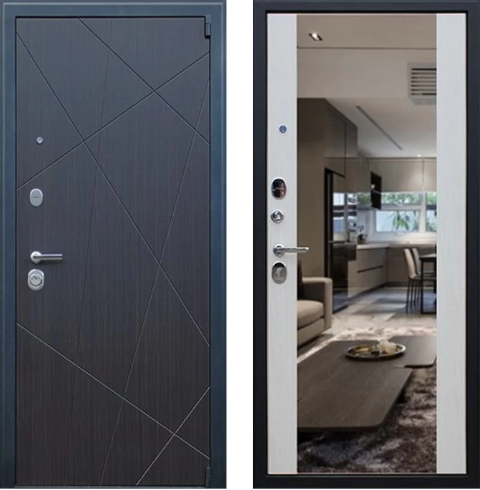 Надежная входная Дверь Вектор с зеркалом премиум класса по цене 49 113 руб. Большая толщина стали защитит от проникновения в ваш дом, квартиру или коттедж. Используется очень качественная фурнитура: замки, цилиндры, ручки, защелки. Покрытие и отделка двери изготовлено под внимательным контролем производителя. Дверь имеет долгий срок службы и гарантию.
